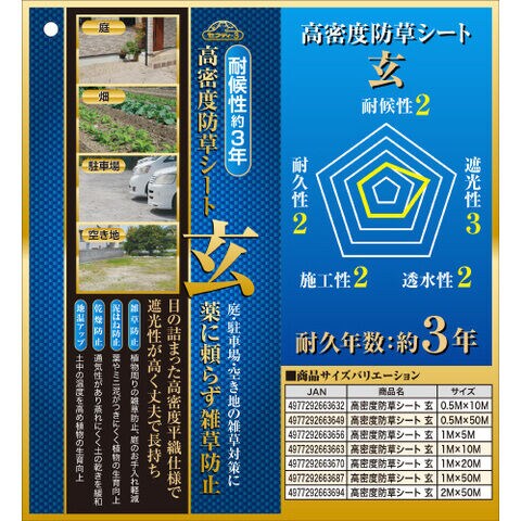 セフティ-3 高密度防草シート 玄 藤原産業 2MX50M 【返品種別B】