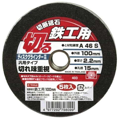 E-Value 切断砥石 鉄工5枚 藤原産業 100X2.2X15_ 【返品種別B】