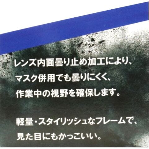 - レンズ仕様:ハードコート・曇り止めレンズ、紫外線カット