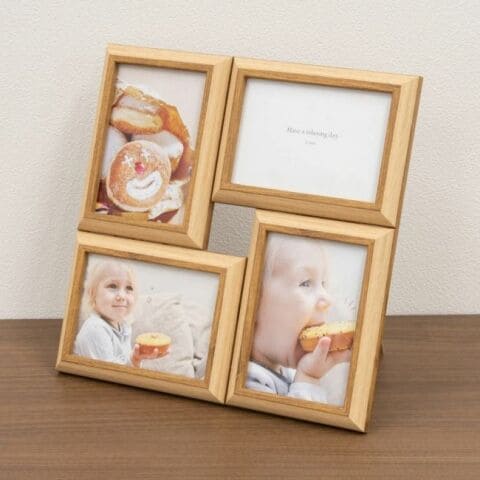 ◆4枚のフレームを接合して正方形にデザインした多面仕様で、Lサイズの写真4枚を同時に飾ることができます