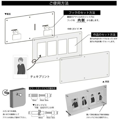 ◆チェキプリントを4枚飾る事ができます