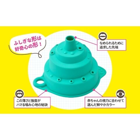 薄さと強度がハマる噛み心地の秘訣 なめられるために追求した先端 赤ちゃんの視力に合わせて選んだ鮮やかカラー