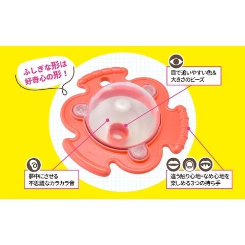 夢中にさせる不思議なカラカラ音 目で追いやすい色&大きさのビーズ 違う触り心地・なめ心地を楽しめる3つの持ち手