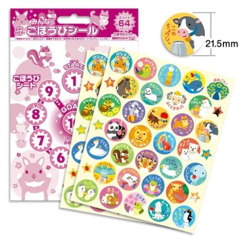 可愛い動物の、ほめてのばすコメント付きごほうびシール。