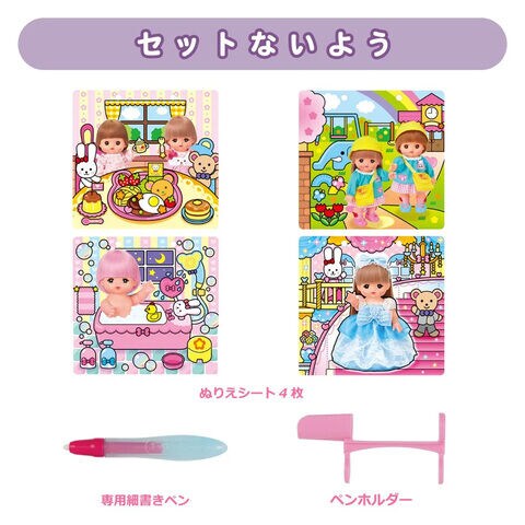 メルちゃんの水で塗れるぬりえです。