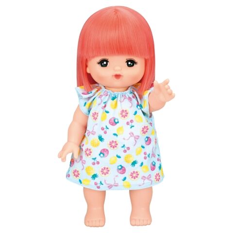 メルちゃん本体(フルーツのワンピース・パンツつき) いちごのおふろ本体 パイナップルのかがみ ぶどうのブラシ りんごのシャンプー もものておけ メロンのポンプ オレンジのバスマット バナナのタオル シールシート はじめてBOOK