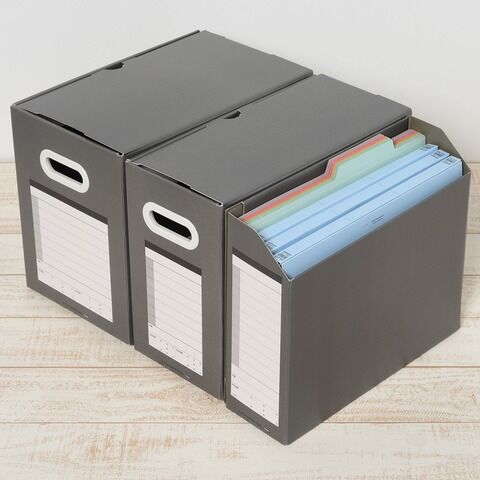 ◆コスト・セービングとスペース・セービングに対する要求を同時に満たし、投げ込み式ならではの管理の手軽さと、情報の量に対するフレキシビリティを兼ね備えた、ボックスタイプのファイリング。