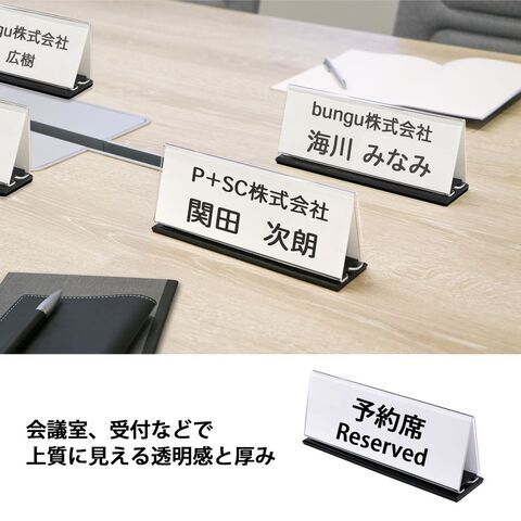 ◆オフィスの案内表示用、接客用受付、店舗のディスプレイスペース、展示会、会議室、セミナー会場などで見劣りしない、透明感と厚みです。