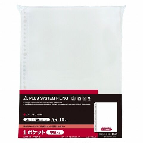 プラス クリアーファイル リフィール 1ポケット 中紙あり A4 (2・4・30穴タイプ)(クリアー) RE-141PP(92372) 【返品種別A】