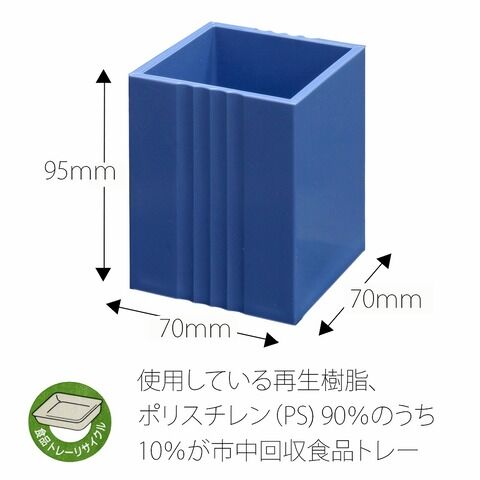 ◆材料の90%が再生樹脂の環境に配慮したペンスタンドで、食品トレーなどの発泡スチロールを粉・加熱溶解し、リサイクル化した素材を使用しています。
