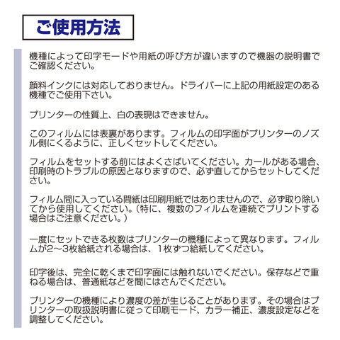 ※レーザープリンターや、用紙設定でOHPシートのないプリンターではご使用になれません。
