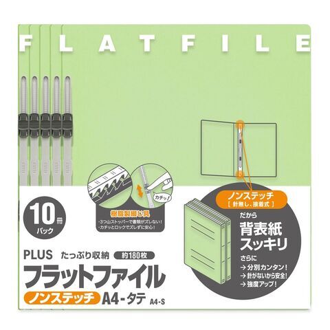 プラス フラットファイル ノンステッチ タテ型 A4-S 10冊パック(グリーン) NO.021NP(78596) 【返品種別A】