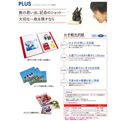◆「お手軽光沢紙」は、インクジェットプリンタ専用の、高品質なグロスコーティング紙。紙をペースにしたキャストコート紙