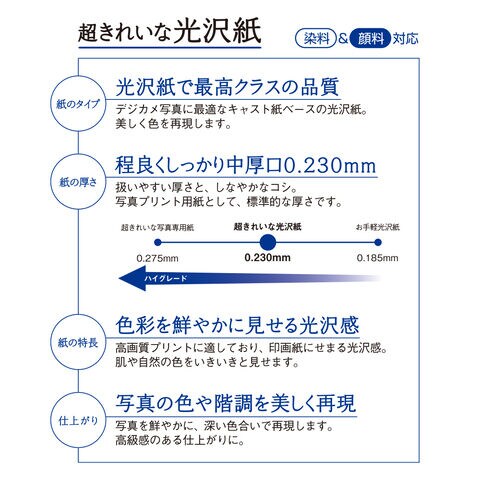 ◆「超きれいな光沢紙」は、インクジェットプリンタ専用の、高品質なグロスコーティング紙です。