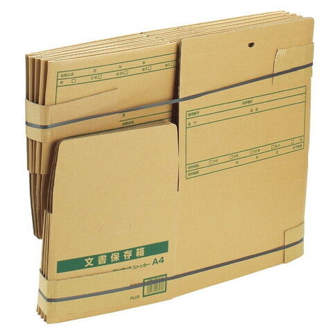 プラス ダンボール箱 ワンタッチストッカー (D型)フタ付き 防炎タイプ 整理収納 ボックス 10枚パック(A4用) DN-242NN(40077) 【返品種別A】
