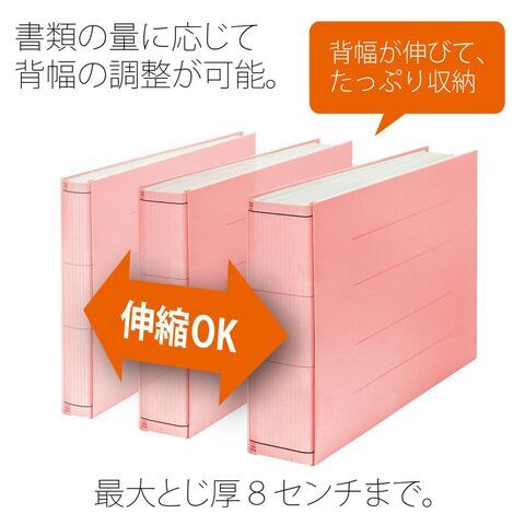 ◆内容量に応じて、とじ厚8cmまで背幅を広げられ、最大約800枚収納できます。※コピー用紙(64g/m2)換算