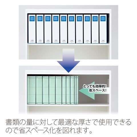 ◆書類量に対して最適な厚さで使用できるので、保管スペースの効率化が図れます。