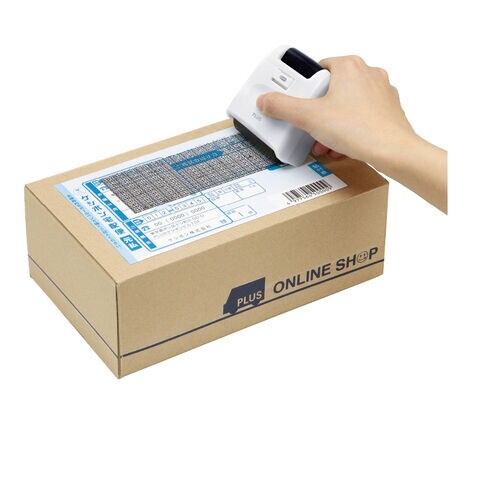 ◆印面はシリーズ最大55mmのワイドタイプ。宅配便の送り状の宛名や、クレジットカード明細書、書類など隠ぺい範囲が広いものに最適。段ボールやクッション封筒などに添付された宅配便伝票などのデコボコした面や筒状郵便物の宛名など曲面にも対応できます。