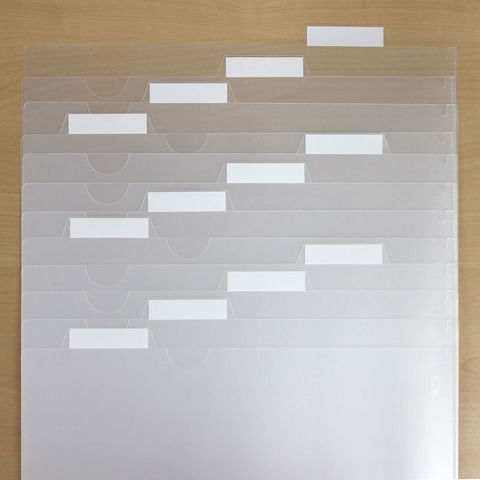 ◆油性ペンで直接書き込みOKのインデックス付き。分類・検索に役立ちます。