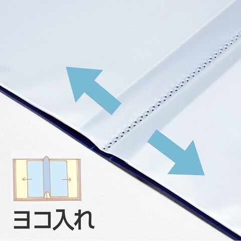 ◆溶着式。ポケットが固定されているので、収容する書類や資料の量が予め決まっている場合や、一定期間収容して資料として閲覧する場合などに便利です。