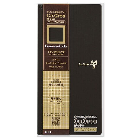 プラス ノート カクリエ プレミアムクロス A4×1/3サイズ 5mm方眼(マットブラック) Ca.Crea(カクリエ) NO-605GP(77926) 【返品種別A】