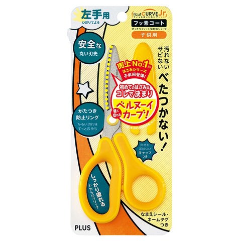 プラス はさみ フィットカットカーブ ジュニア フッ素コート 左手用 子ども用(イエロー) SC-145ML(34673) 【返品種別A】