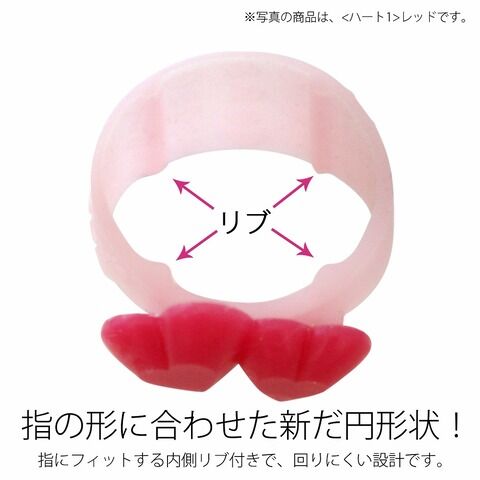 ◆リング部分のゴムにハートデザインの滑り止め付き。ハート型の突起が紙をしっかりキャッチします。