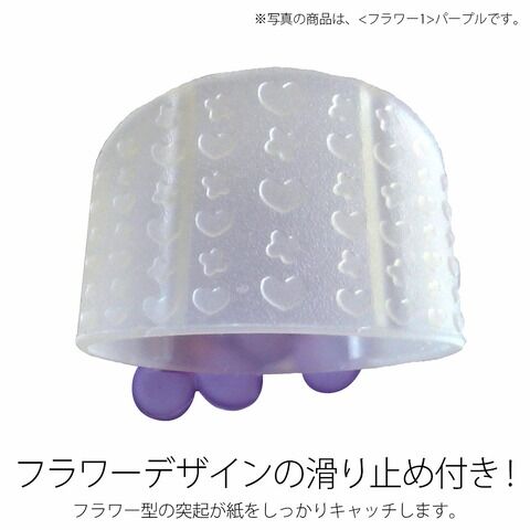 ◆リング部分のゴムにハートデザインの滑り止め付き。ハート型の突起が紙をしっかりキャッチします。