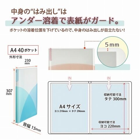 - ポケット内寸:縦299mm×横220mm(A4サイズ(縦297mm×横210mm)向けポケットファイル)