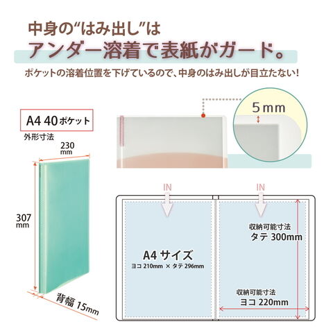 - ポケット内寸:縦299mm×横220mm(A4サイズ(縦297mm×横210mm)向けポケットファイル)