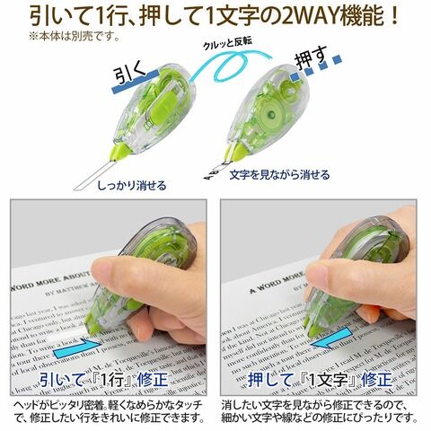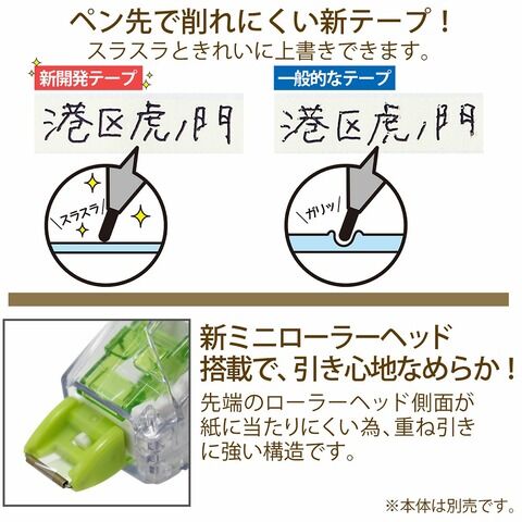 ◆「ホワイパースライド」の交換テープは、ポップカラー、ベーシックカラーの本体及び、「裏から見えない修正テープ」にもご使用いただけます。
