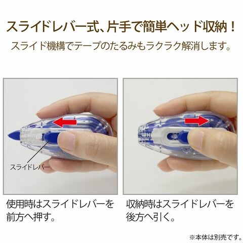 ◆「ホワイパースライド」の交換テープは、ポップカラー、ベーシックカラーの本体及び、「裏から見えない修正テープ」にもご使用いただけます。