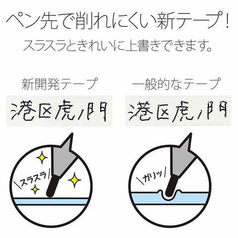 ◆新テープを採用(白色層の厚み:約11%減 ※プラス社比)。ペン先で削れにくく、スラスラとキレイに上書きできます。