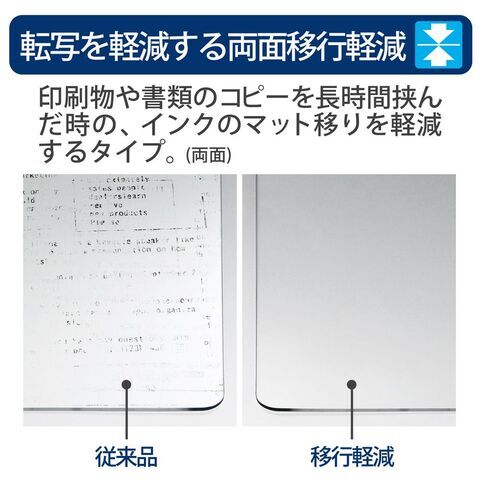 ◆両面移行軽減:印刷物や書類のコピーを長期間挟んでおいてもインクの転写を軽減するタイプ。キレイにご使用いただけます。