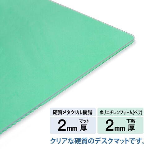 ◆硬質メタクリル樹脂を使用しており、透明度が高くしっかりと硬い樹脂で耐久性に優れているデスクマットです。