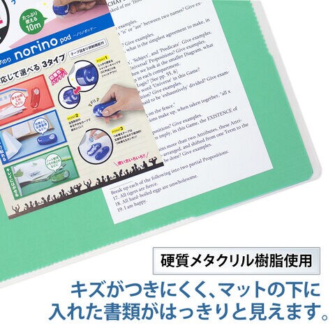 ◆爽やかなライトグリーン色の下敷付きで、はさんだ書類などが見やすく、上のマットもずれにくいから作業がしやすいです。