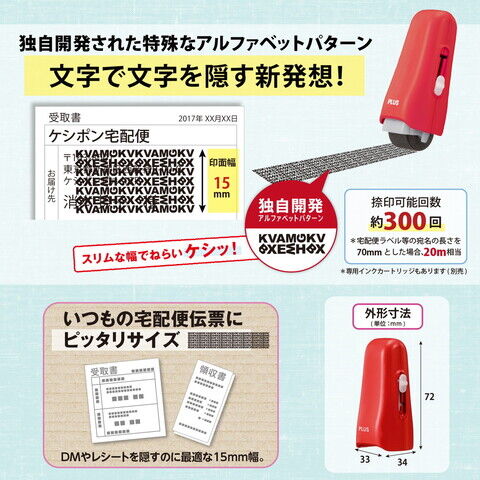 プラス 個人情報保護スタンプ ローラーケシポン スティック 15mm(レッド) IS-550CM(39149) 【返品種別A】