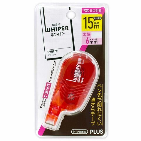 プラス 修正テープ ホワイパー スイッチ 5mm幅 (15m) 本体+交換テープセット(レッド) WH-1516(50136) 【返品種別A】