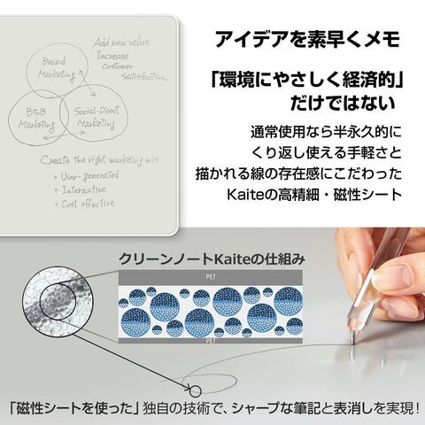・新開発の磁性シートは、なめらかで細やかな筆記線を実現、使うと実感できる自然な書き心地
