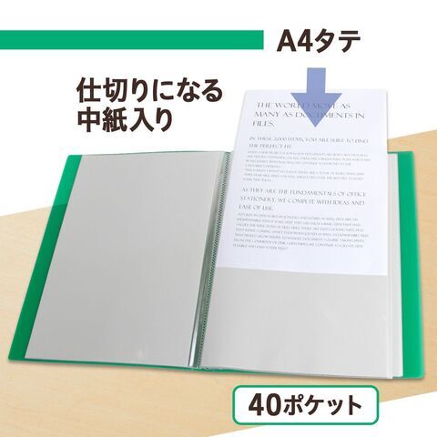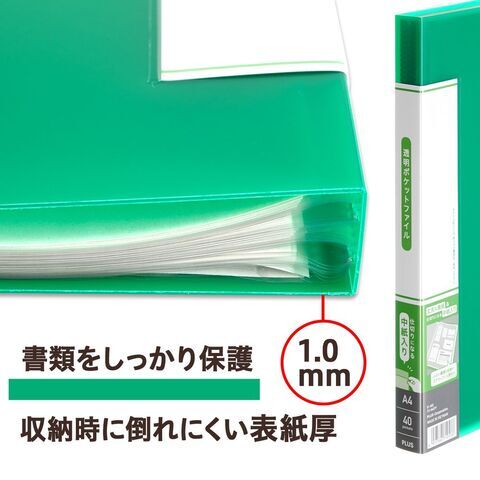 プラス 透明ポケットファイル A4 40ポケット(グリーン) FC-940TP(91682) 【返品種別A】