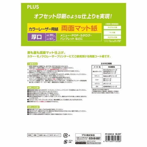 プラス 両面マット紙[A4/厚口/100枚] PLUS カラーレーザー用紙 PP-120WX-M(56207) 【返品種別A】