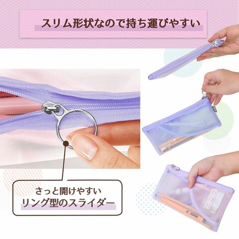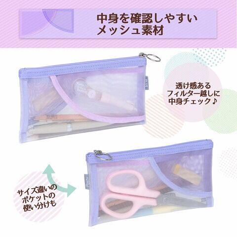 ◆小物ポケット付きで取り出しやすく、収納しやすいメッシュ素材の透けるペンケース