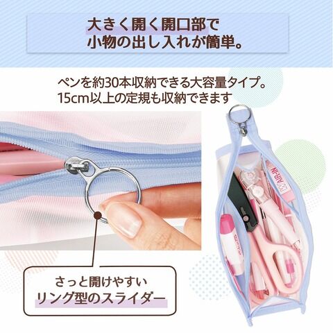 ◆小物ポケット付きで取り出しやすく、収納しやすいメッシュ素材の透けるペンケース