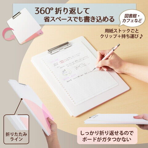 ◆表紙は360°折り返すことができ、ガタつかず、安定して書き込むことができます。