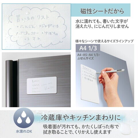 ◆繰り返し書いて消せる。ふせんのように貼ってはがせる! 磁性シート