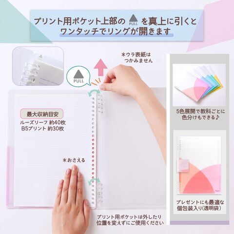 - 最大収納目安:ルーズリーフ約40枚、B5プリント約30枚