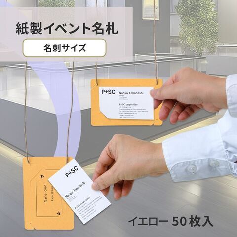 プラス イベント名札 ネームタグ オール紙製 名刺サイズ 50枚入(イエロー) CT-E5(84882) 【返品種別A】