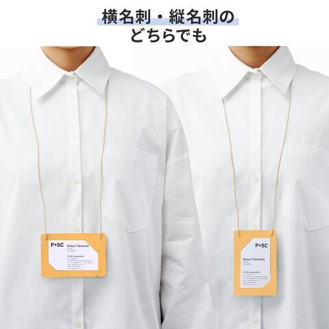◆紐を一か所付け替えることで、縦向きの名刺にも対応。