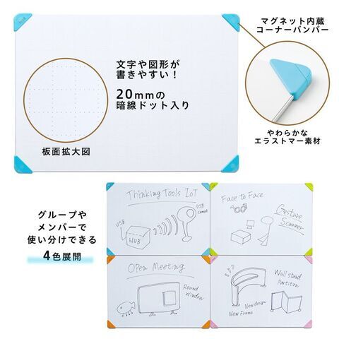 ◆マグネット内蔵のコーナーにより、黒板やホワイトボードに貼り付け可能
