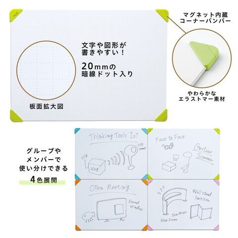 ◆マグネット内蔵のコーナーにより、黒板やホワイトボードに貼り付け可能